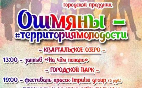 Приглашаем вас на городской праздник «Ошмяны — #территориямолодости» 25 июня! В этом году программа празднования самого энергичного праздника раскинулась на нескольких основных площадках: В 13:00 на Квартальском озере все вместе поплывём «На чём попало», где каждый желающий сможет проявить свои «судостроительные» навыки, а также умение держаться на воде, ловкость и сноровку! В 19:00 в городском парке […]