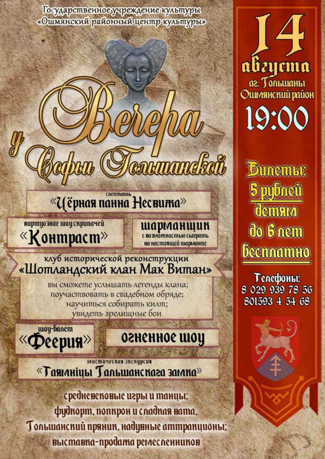 Упершыню на Гальшаншчыне выступіць ансамбль яўрэйскай музыкі «Шалом» з Ліды, сваёй творчасцю падзеляцца ўдзельнікі шоў-балета «Феерия» з Мінску. Прыемны падарунак для гальшанцаў і гасцей аграгарадка падрыхтавалі ўдзельнікі Ашмянскага народнага тэатра — спектакль «Черная панна Несвижа». Таксама ў праграме — сярэднявечныя гульні і танцы, экскурсія па Паўночнай вежы, майстар-класы і выстава-продаж рамеснікаў, кіданне дроцікаў, дзіды […]