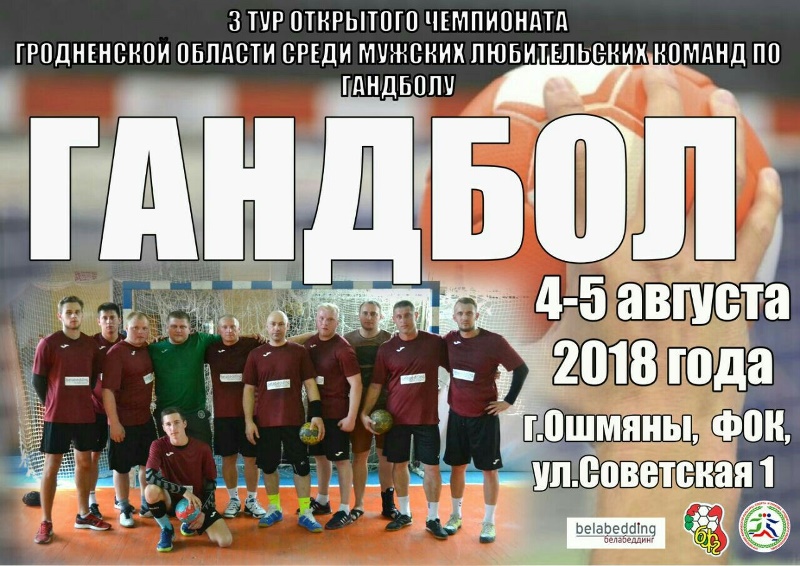 С 4 по 5 августа в Ошмянах пройдёт 3 тур чемпионата Гродненской области по гандболу среди мужских команд. 4 августа 12.00 Волковыск — ГрГУ (военный факультет) 12.50 Брест — Кореличи 13.40 Слоним — Щучин 14.30 Ошмяны — Волковыск 15.20 Гродно — ГрГУ ( военный факультет) 16.10 Брест — Щучин 17.00 Ошмяны — Кореличи 17.50 Гродно […]