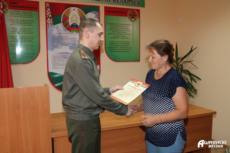 Военный комиссар Ошмянского района Игорь Мисюкевич встретился с матерями наших земляков, которые, достойно несли срочную службу в разных уголках Беларуси. Обращаясь к каждой из них, он зачитал Благодарственный лист командования частей, где служили их сыновья. Они являлись образцом исполнительской дисциплины, достигли успехов в служебной деятельности. Характеристики, полученные от командования, свидетельствуют о том, что ошмянские ребята […]