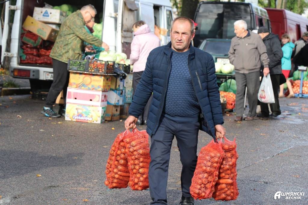 Традыцыйны восеньскі кірмаш у суботу паклікаў ашмянцаў за пакупкамі. З раніцы ліў дождж, аднак самыя смелыя ўжо ў дзевяць гадзін, узброіўшыся парасонамі, рабілі свой выбар. Гараджан і вяскоўцаў чакалі багатыя гандлёвыя палаткі, машыны сельгаспрадпрыемстваў і фермерскіх гаспадарак, а таксама гаспадары, якія прывезлі на продаж лішкі вырашчанай на сваіх участках садавіны і гародніны. Вочы разбягаліся ад яркіх восеньскіх фарбаў.