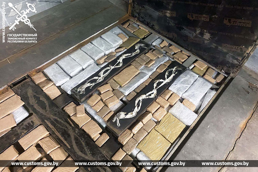 Демонтировав декоративную обшивку пола кабины грузовика и переднюю часть полуприцепа, гродненские таможенники извлекли 231 брикет со спрессованным веществом темно-коричневого цвета.