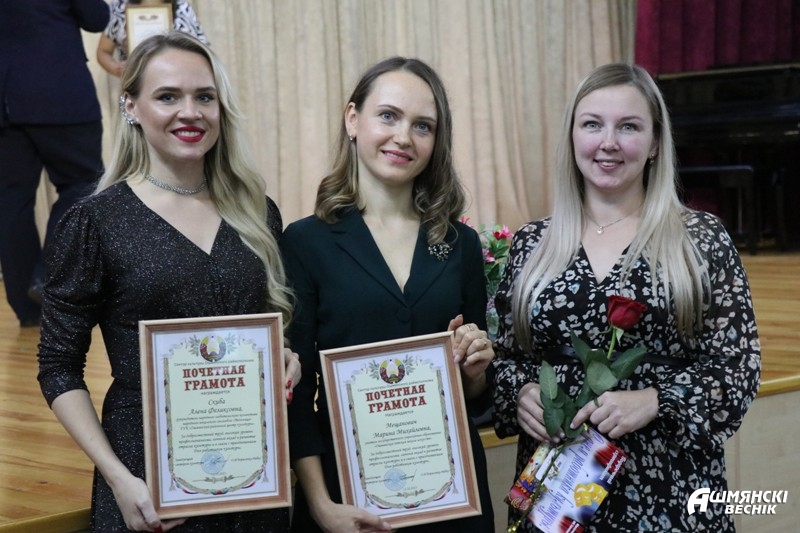 Присутствовала на торжественном мероприятии и Светлана Барковская, председатель совета Ошмянского районного отделения Белорусской партии «Белая Русь». Она отметила огромный вклад работников культуры, их талант и безграничные возможности. После Светлана Николаевна вручила благодарственные письма Геннадию Чаплинскому, Константину Ярошу, Валентине Бартанович и Татьяне Ивановой.
