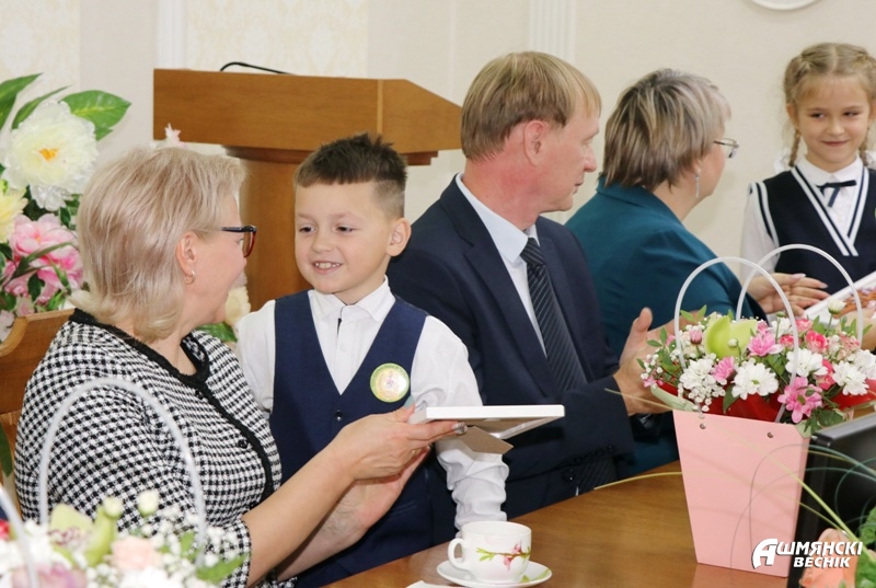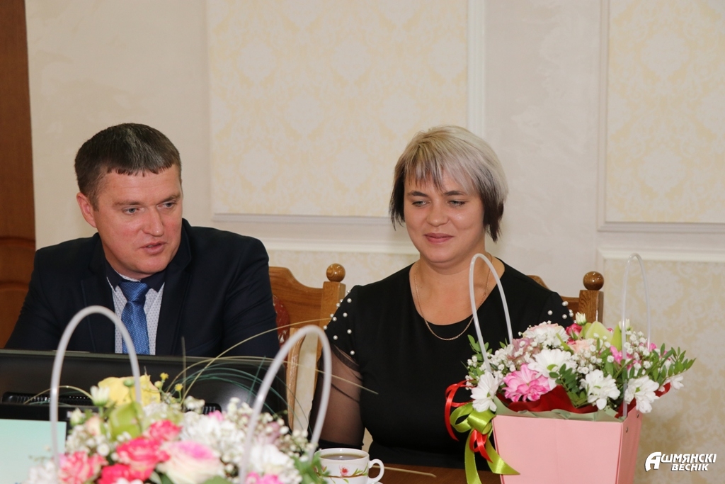 В тожественной обстановке счастливых родителей приветствовал председатель Ошмянского райисполкома Владислав Гершгорин.