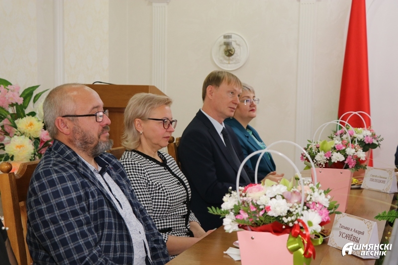 Поздравления и цветы от председателя райисполкома принимали шесть супружеских пар. Тересе и Андрею Усачевым, которые трудятся в ОАО «Строитель» удалось создать крепкую, дружную семью. Можно с уверенностью сказать, что она прошла испытание временем – супруги вместе уже 21 год. Взаимоотношения в семье строятся на доверии и любви, заботе и уважении. Эти главные принципы родители передали и сыну Анатолию.
