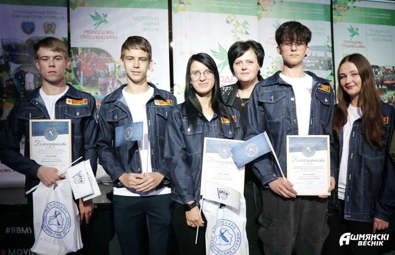 Вместе с первым секретарем Ошмянского РК ОО «БРСМ» Юлией Субач на юбилейное собрание были приглашены представители студенческого экологического отряда «Болт» имени ветерана Великой Отечественной войны Ивана Босько Ошмянского аграрно-экономического колледжа Виктория–Мария Алехно, Алексей Герман, Владислав Выменец, Виктория Мантур и Борис Астрамович.