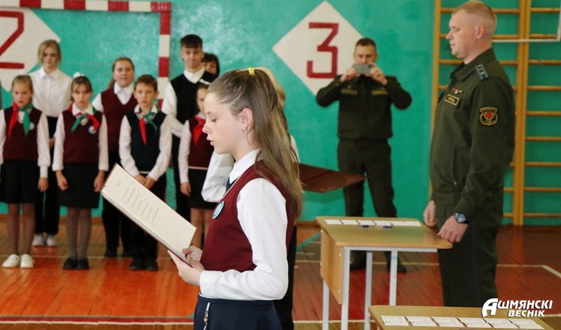 В этот торжественный день ребят и их родителей приветствовали директор Докурнишской средней школы Людмила Кардис, заместитель командира полка Сергей Ермолов, прокурор Ошмянского района Сергей Ковальчук, начальник управления образования Светлана Барковская, заместитель начальника отдела внутренних дел Ошмянского райисполкома по идеологической работе и кадровому обеспечению Олег Хилькевич.