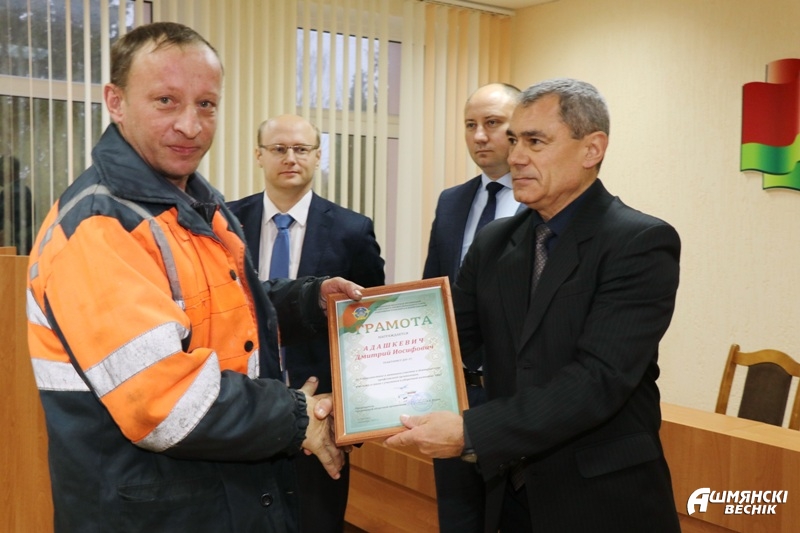 Поздравляя коллектив ДЭУ-57 с профессиональным праздником, председатель Гродненской областной организации Белорусского профсоюза работников транспорта и коммуникаций Анатолий Пукач отметил, что в этом году работники организации продемонстрировали профессионализм, не только занимаясь ремонтом дорог, но и на уборке урожая, подставив надежное плечо сельхозорганизациям Ошмянского района. За участие в уборочной кампании грамотой областной организации отраслевого профсоюза отмечен труд трактористов Дмитрия Адашкевича и Андрея Ивашко, водителя Александра Бернацкого, энергетика Андрея Бернацкого.