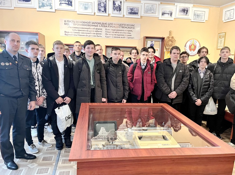 Заместитель начальника РОВД по идеологической работе и кадровому обеспечению Олег Хилькевич рассказал об истории Ошмянского райотдела милиции, ее традициях, сотрудниках, которые всегда готовы прийти на помощь человеку, попавшему в беду, об особенностях службы в органах внутренних дел. Перед учениками выступили начальник отделения ГАИ Андрей Кирковский и начальник инспекции по делам несовершеннолетних Вадим Клим. Старший инспектор группы кадров Александр Лыскойть продемонстрировал юным гостям видеофильм об учебе в Могилевском институте МВД Республики Беларусь. Перед подростками выступил выпускник Академии МВД Республики Беларусь 2023-го года Максим Шидловский, старший оперуполномоченный группы по противодействию киберпреступности, который рассказал ребятам о жизни курсантов академии, ответил на интересующие школьников вопросы.