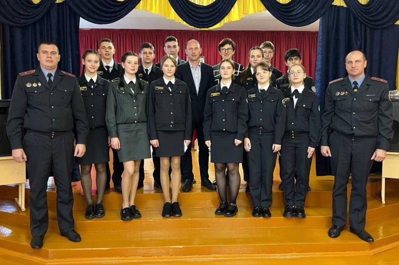 С важным событием в жизни старшеклассников поздравил директор школы Евгений Новицкий. Со словами напутствия и добрыми пожеланиями к учащимся обратились гости праздника: заместитель начальника управления образования Анна Амбражевич, заместитель начальника Ошмянского РОВД по идеологической работе и кадровому обеспечению Олег Хилькевич, который вручил ребятам удостоверения учащихся правового класса. Гости пожелали ребятам учебных и творческих побед, выразили уверенность в том, что однажды избранный путь защитника правопорядка если и не определит будущую профессию, то воспитает в душах юных ребят ответственность за сохранение законности и порядка на белорусской земле.