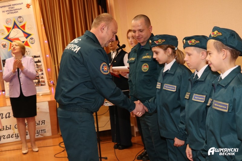 Андрей Горбач под всеобщие аплодисменты вручил паспорт класса Валентине Шавердо, классному руководителю, а ребята получили удостоверения и небольшие подарки от Ошмянского РОЧС.