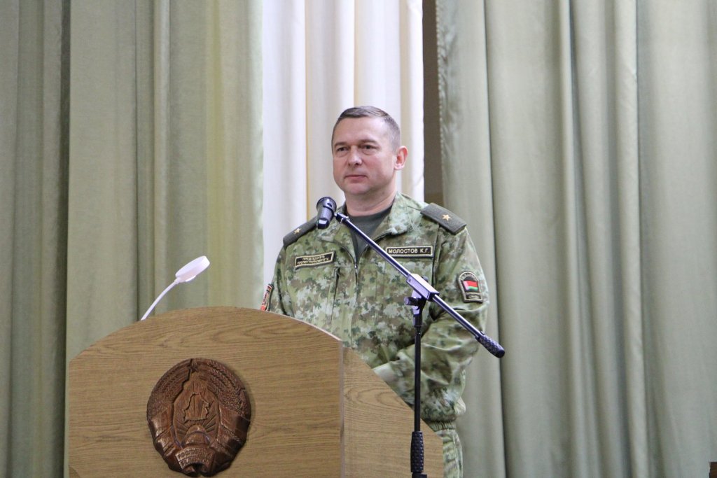 На базе Сморгонской пограничной группы Председатель Государственного пограничного комитета генерал-майор Константин Молостов провел занятие на тему: «Экономическая безопасность – ключевое условие устойчивого развития белорусского государства».