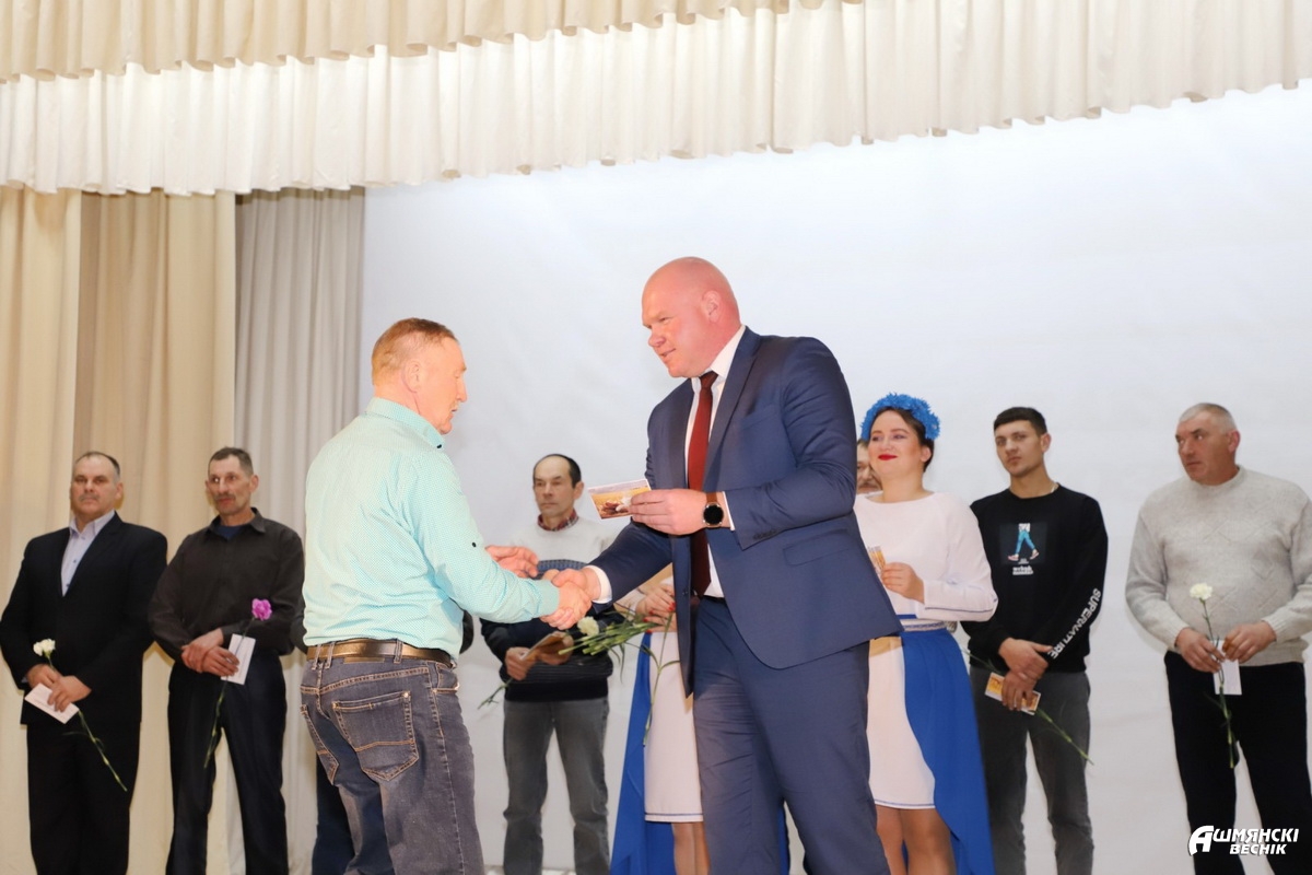 Слова благодарности и признательности тем, кто работает на полях и фермах, в производственных цехах выразил первый заместитель председателя Ошмянского райисполкома, начальник управления сельского хозяйства и продовольствия Андрей Гордей. Вместе с искренними пожеланиями десятки передовиков сельскохозяйственной отрасли принимали в этот день поздравительные конверты.
