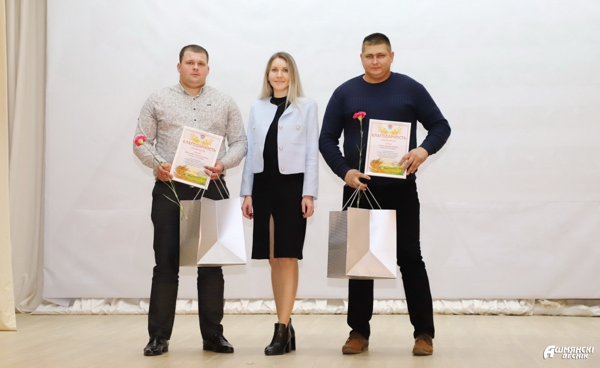 Благодарности и подарки за высокие показатели в системе агропромышленного комплекса от районного комитета ОО «БРСМ» принимали комбайнер КСУП «Краковка» Александр Суровец и водитель КСУП «Гольшаны» Денис Соболь» — поздравления передовикам адресовала главный специалист отдела идеологической работы и по делам молодежи райисполкома Екатерина Толочко.