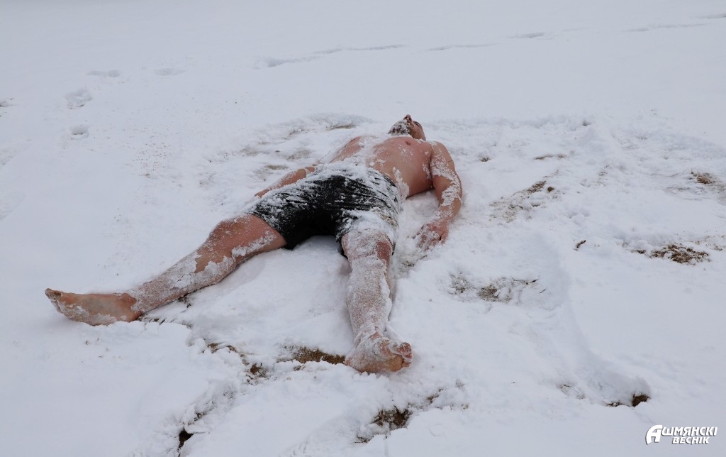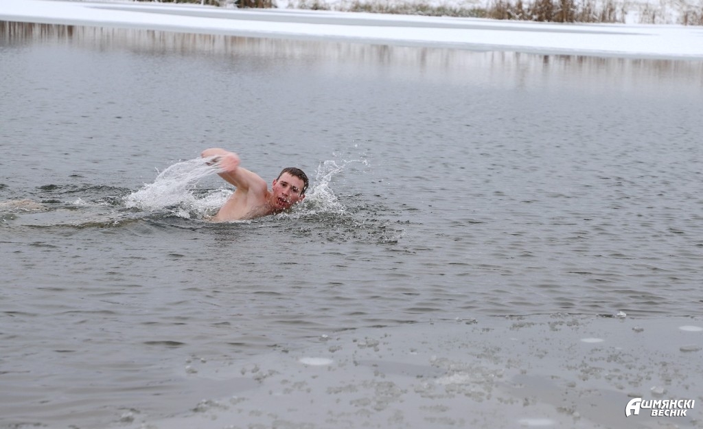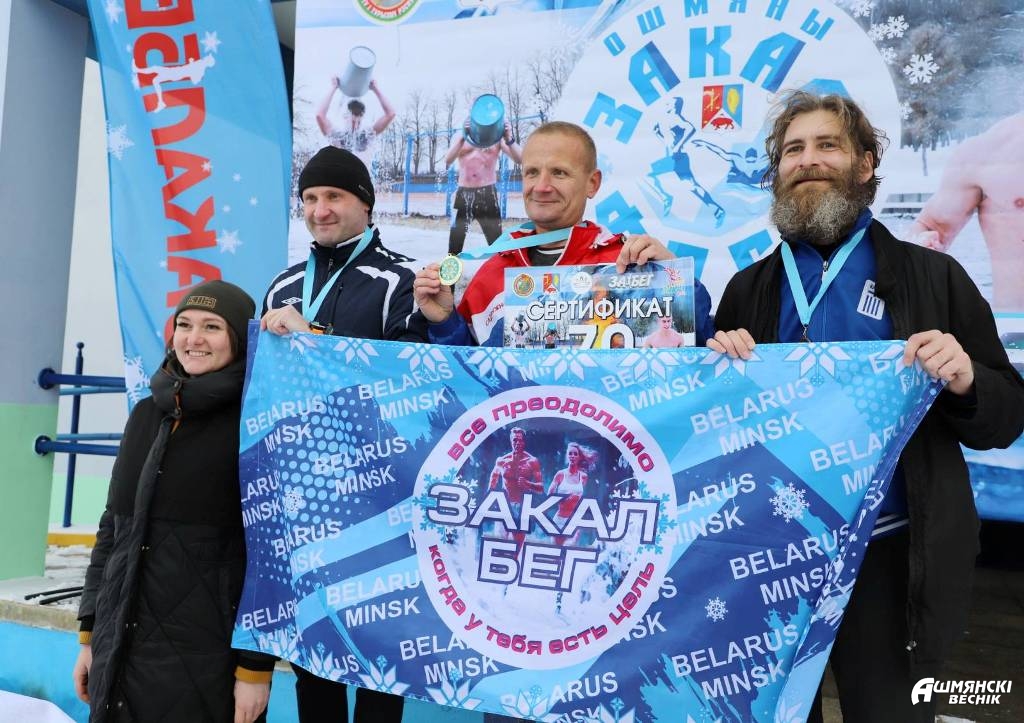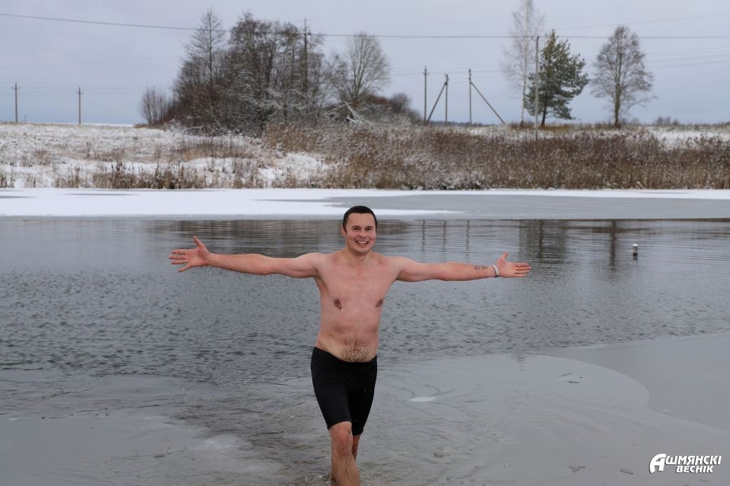 Ради сохранения отличной спортивной формы и крепкого здоровья люди готовы пойти на многое, даже искупаться в холодный, по-настоящему зимний день. После преодоления дистанции смельчаки решили использовать старинный способ оздоровления – закаливание. Безусловно, большинство из них прибегают к такому методу не впервой – обливания холодной водой и постепенное, с ранней осени, закаливание у них в практике. Впрочем, как отметил наш земляк Андрей Загурский, который легко преодолел почти 15 километров, в пруд при такой температуре (термометр показывал -3℃) он окунался впервые.