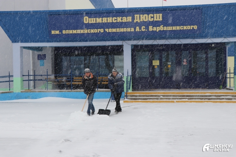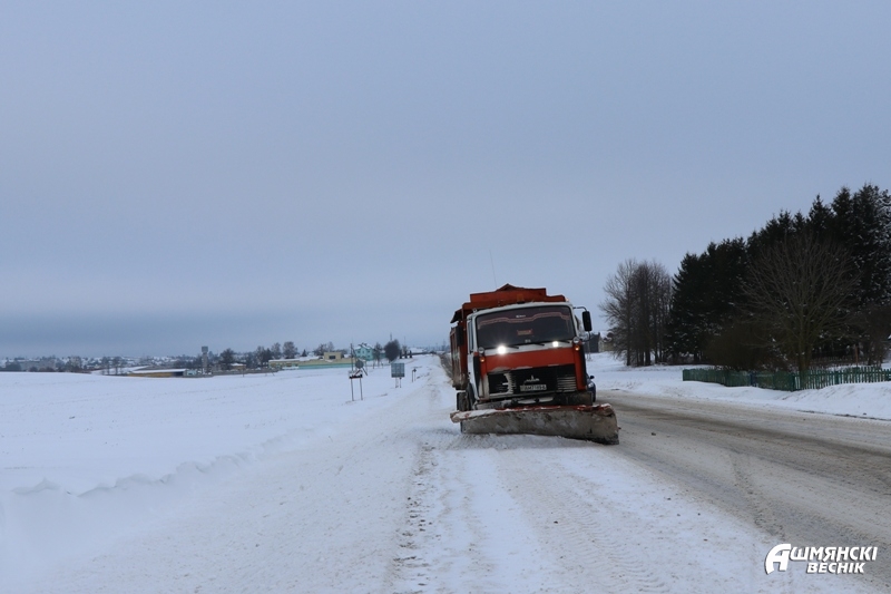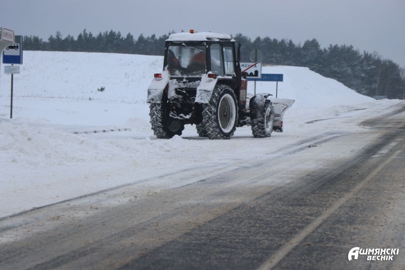 По дороге Ошмяны–Гольшаны на уборке снега задействована техника дорожных организаций. В Буденовке, микрорайоне Западном на помощь работникам ЖКХ выходят горожане. Совместно ошмянцы расчищают территории возле зданий, освобождая от снега проезжую часть и пешеходную зону.