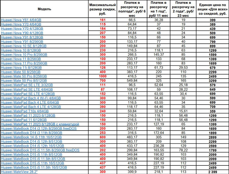 Перечень моделей смартфонов, ноутбуков, планшетов и мониторов по выгодным ценам представлен в таблице: