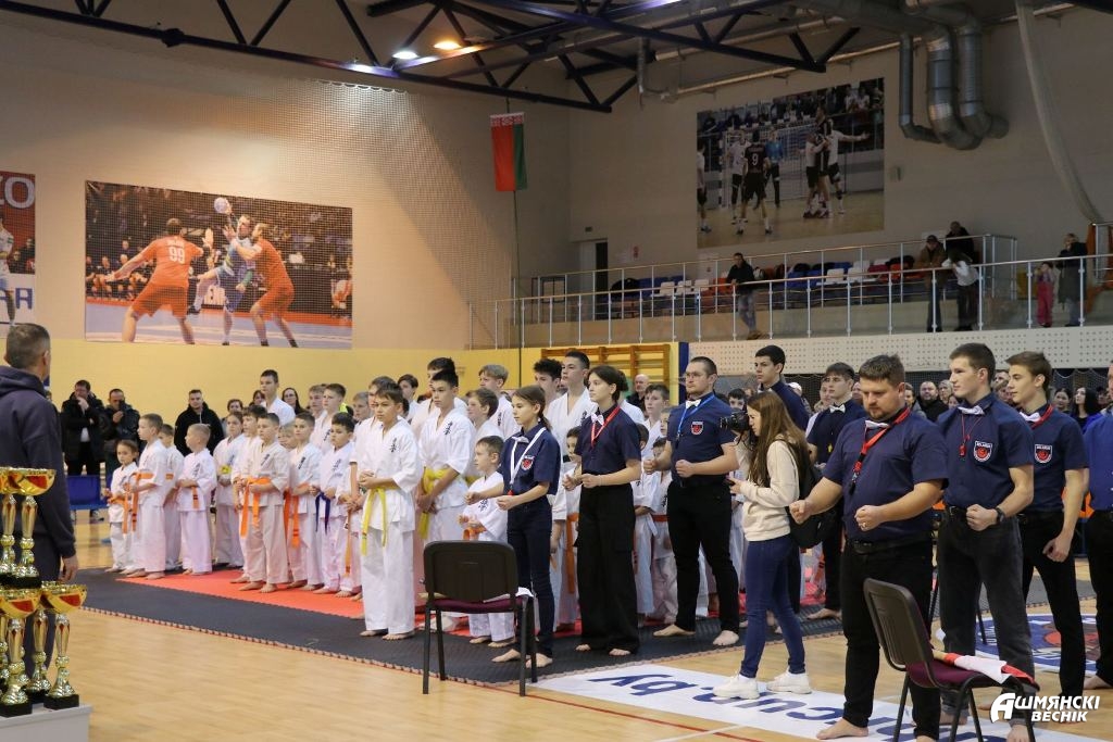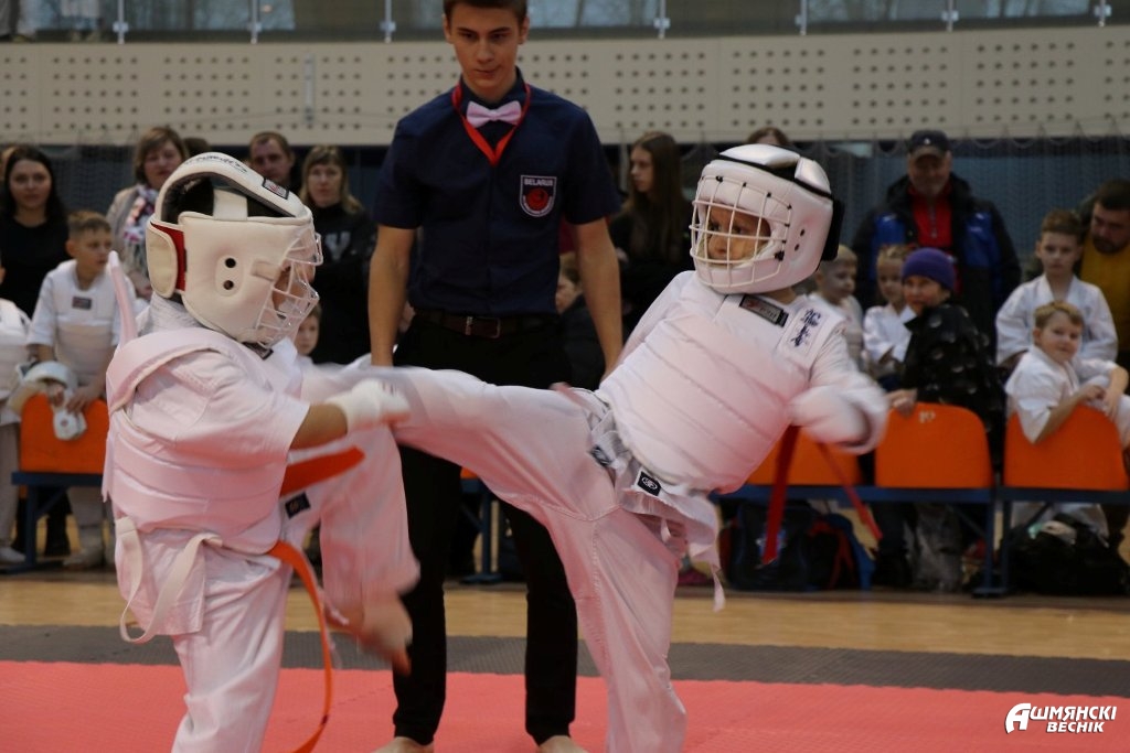 В физкультурно-оздоровительном комплексе в Ошмянах проходит открытый турнир по шинкиокушин карате «II Кубок чемпионов». Масштабное соревнование собрало юных спортсменов всех клубов и городов Республики Беларусь, входящих в состав «Белорусской федерации шинкиокушин карате». На турнире представлены команды юношей и девушек в разных возрастных категориях: самым юным участникам турнира – 6-7 лет, возраст старшей категории — 14-15 лет.