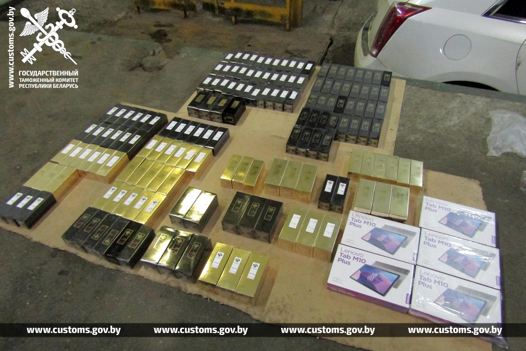 Возвращаясь из Литвы, гражданин выбрал «зеленый» коридор, тем самым подтвердив, что не перемещает товары, подлежащие таможенному декларированию. Легковой автомобиль Cadillac направили на осмотр с применением инспекционно-досмотрового комплекса. На полученной сканограмме таможенники заметили «довложения». При досмотре установили, что 5 планшетов Lenovo и более 150 единиц парфюмированной воды Mancera были спрятаны в заднем бампере и в днище автомобиля.