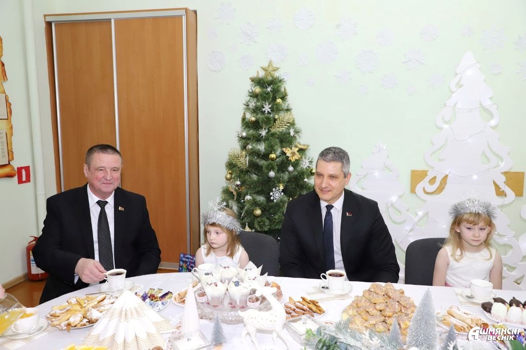 В преддверии нового года в рамках акции «Наши дети» представители власти, предприятий и организаций посещают различные учебные учреждения, интернаты, дома семейного типа. Их цель – уделить внимание каждому ребенку. Не обошли вниманием и социально-педагогический центр Ошмянского района. Поздравить воспитанников центра приехал заместитель премьер-министра Республики Беларусь Леонид Заяц. На новогоднем празднике присутствовали также председатель Ошмянского райисполкома Владислав Гершгорин, его заместитель Анна Язель, начальник управления образования Светлана Барковская.