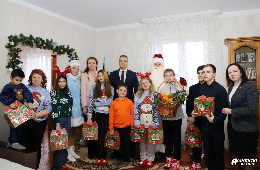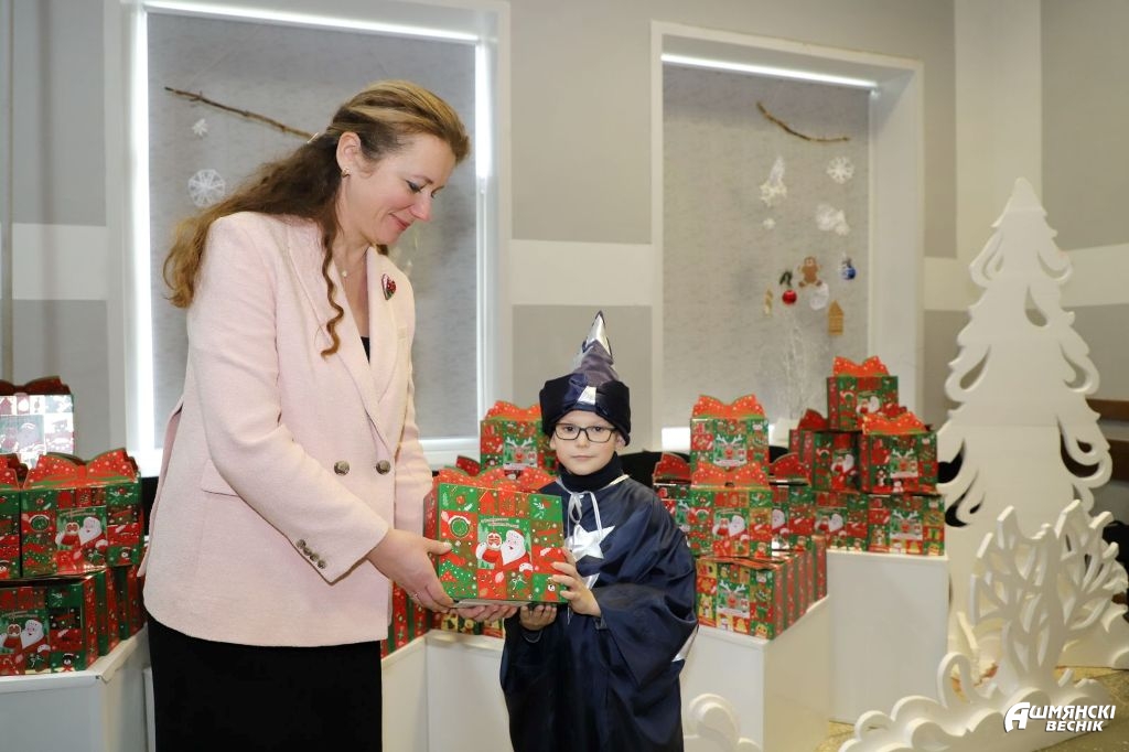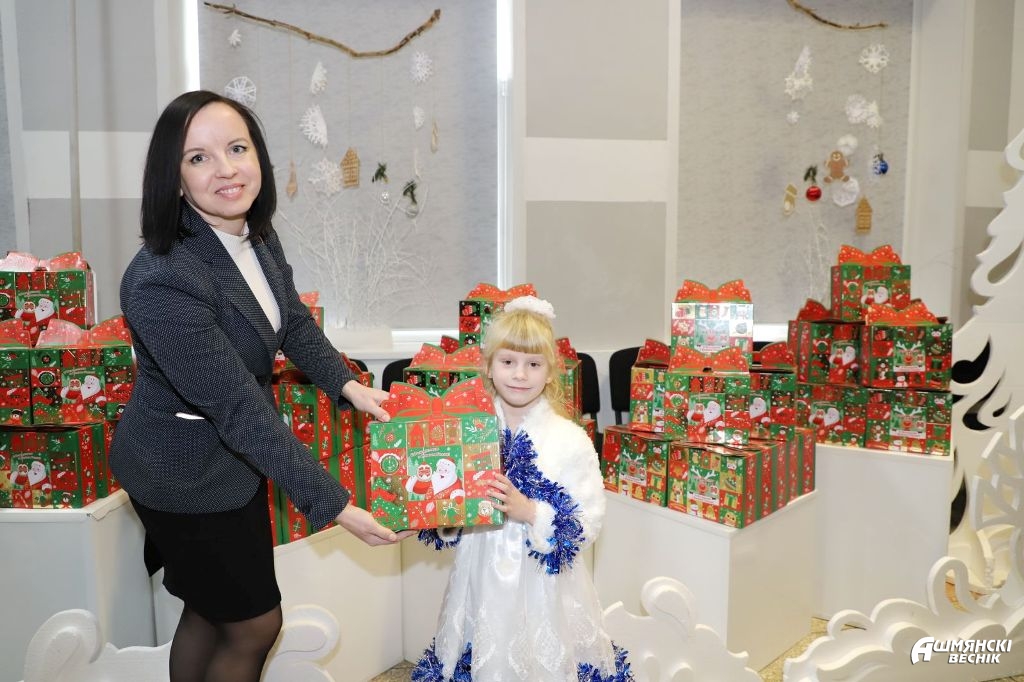 Благотворительная акция «Наши дети» собирает все больше неравнодушных сердец, которые в эти дни создают праздник для юных белорусов и их родителей. В канун новогодних праздников марафон добра набирает обороты. Ребята Ошмянского района принимают поздравления от председателя райисполкома Владислава Гершгорина, его заместителя Анны Язель, начальника управления образования Светланы Барковской.