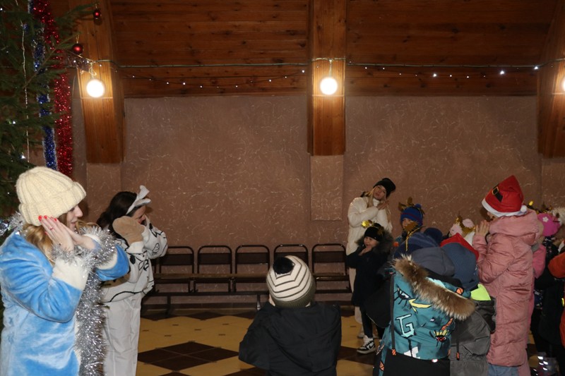 В программу новогоднего представления входили удивительные приключения сказочных героев и танцевальный флешмоб, а также катание на лошадях по зимнему лесу. К сожалению, погодные условия не позволили осуществить все задуманное, но это ничуть не испортило настроение гостям. У ворот лагеря детей встречала Снегурочка, с теплом приветствовавшая каждого, а затем проводила в просторный зал, где всех ждал милый и улыбчивый Зайчик. Традиционно на пути к встрече с главным героем зимней сказки – Дедом Морозом — ребятам пришлось столкнуться с трудностями и отрицательными персонажами в виде Бабы-Яги, Снежной Королевы, Дракона и Разбойника. Малыши выполняли все задания, пели и танцевали, прежде чем на их дружный зов «Дедушка Мороз!» не появился он – любимый сказочный персонаж как детей, так и взрослых.