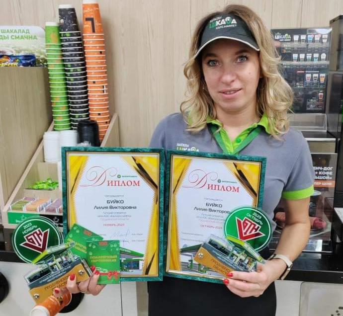 В октябре и ноябре 2023 года Лилия Викторовна становилась победителем профессионального конкурса «Лучший оператор сети АЗС «Беларуснефть».