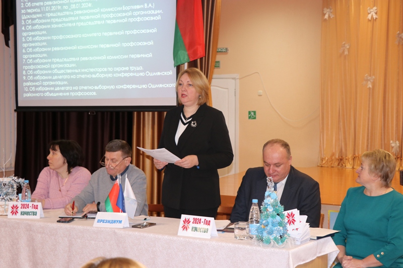 В ходе собрания председателем первичной профсоюзной организации на новый срок единогласно избрана Тереса Лугина, ее заместителем – Эльжбета Шульжицкая. Избранные председатель и ее заместитель принесли клятву профсоюзного лидера.