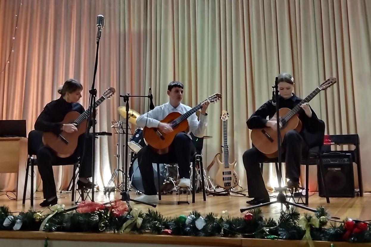 С педагогами выступили и юные гитаристы Алина Лычковская и Олег Колядко.