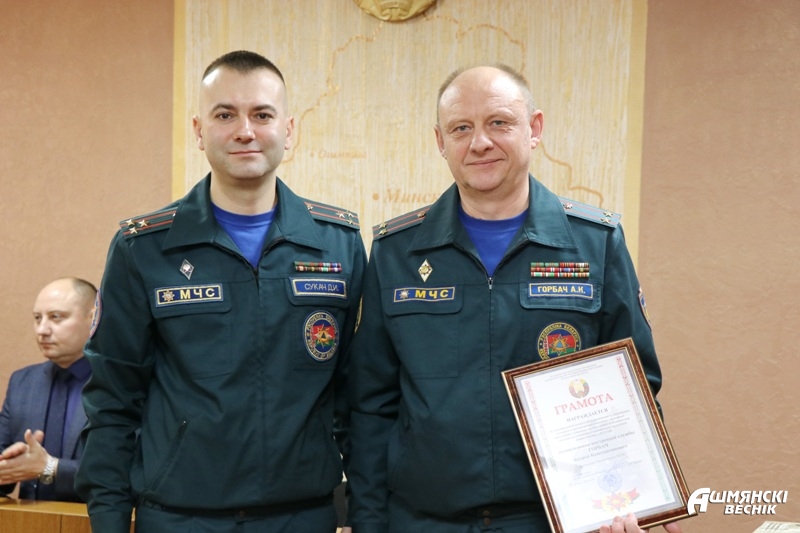 За образцовое выполнение служебных обязанностей грамотой Гродненского областного управления МЧС награждены начальник РОЧС Андрей Горбач и старший водитель ПАСЧ-1 Виталий Ковшик. Начальник ПАСЧ-1 Павел Лайбис и водитель ПАСЧ-1 Андрей Явтошук отмечены Благодарностью начальника Гродненского областного управления МЧС.