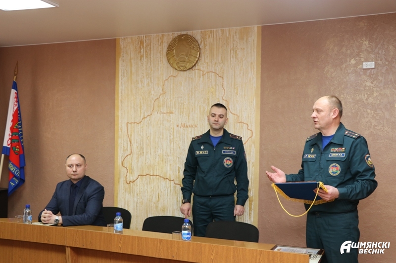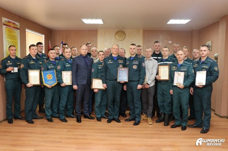 Итоговое совещание в Ошмянском райотделе прошло накануне профессионального праздника. Поздравления с Днем спасателя и слова благодарности за службу и личный вклад каждого в предупреждение и ликвидацию пожаров и чрезвычайных ситуаций, а также заслуженные награды принимали спасатели от заместителя председателя райисполкома Андрея Клышевского и заместителя начальника областного ведомства спасателей Дмитрия Сукача.