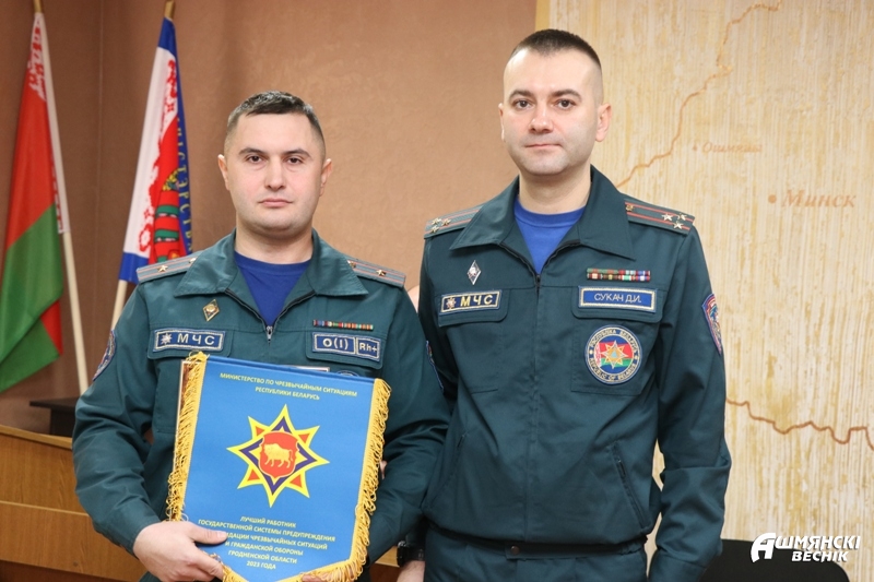 Поздравления и заслуженную награду – диплом и вымпел областного управления МЧС – принимал старший инженер Ошмянского РОЧС Сергей Лисовский, признанный по итогам областного конкурса лучшим работником государственной системы предупреждения и ликвидации чрезвычайных ситуаций и гражданской обороны Гродненской области.