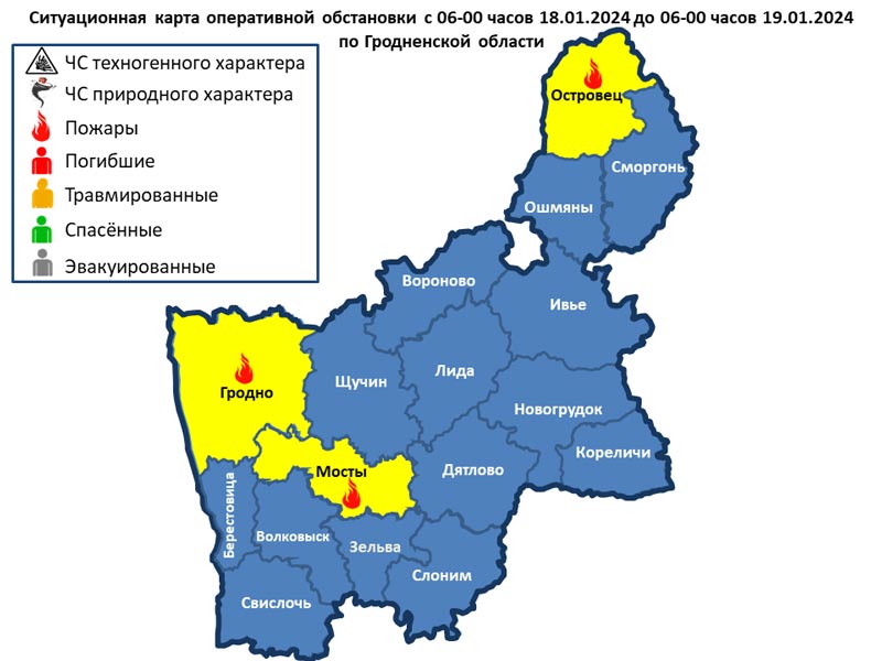 18.01.2024 в 18-11 поступило сообщение о пожаре в жилом доме в аг. Милевичи Мостовского района. В результате повреждены перекрытие, стены, имущество. Причина пожара устанавливается.