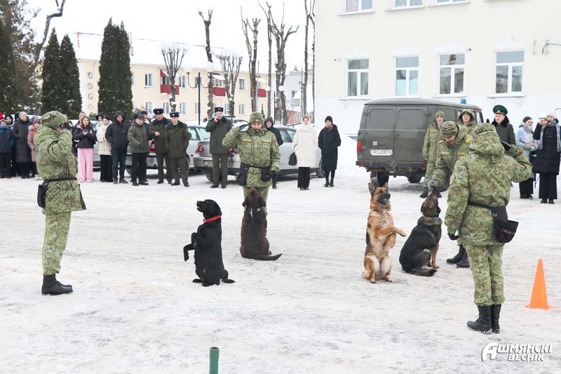 После мероприятия на площадке возле РЦК, рядом с расположившейся тут военной техникой, перед юношами и девушками выступили кинологи кинологического центра органов пограничной службы со своими подопечными и показали всем желающим, какими навыками и боевыми качествами обладают четвероногие пограничники.