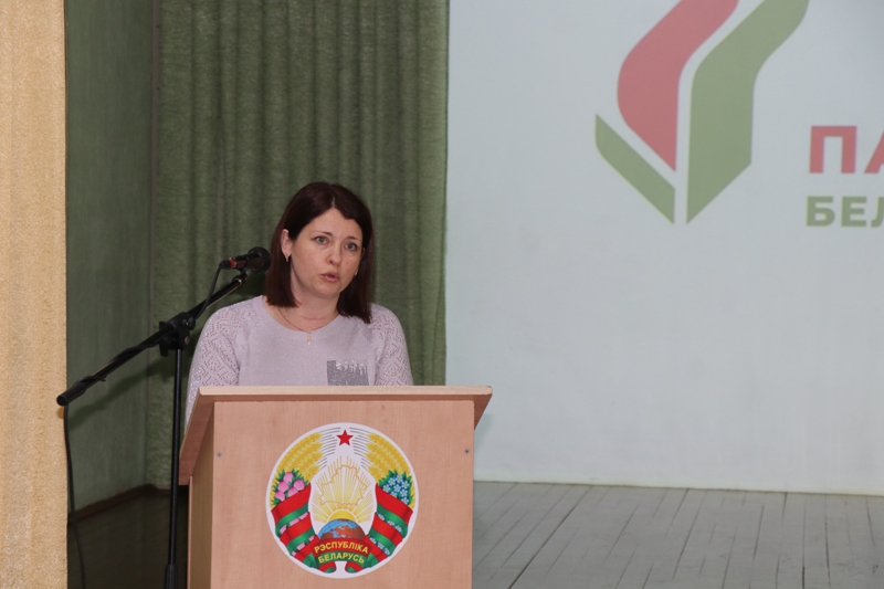 Светлана Барковская, начальник управления образования Ошмянского райисполкома, председатель совета Ошмянского районного отделения Белорусской партии «Белая Русь», напомнила о том, что закончилась регистрация кандидатов в депутаты Палаты представителей Национального собрания и местных Советов депутатов. Среди кандидатов — представители всех политических партий, зарегистрированных в Беларуси: Коммунистической и Либерально-демократической партий Беларуси, Белорусской партии «Белая Русь», Республиканской партии труда и справедливости. Наибольшее количество депутатов — члены Белорусской партии «Белая Русь». Поблагодарив собравшихся за активную жизненную позицию, Светлана Барковская вручила членские билеты вступившим в ряды партии.