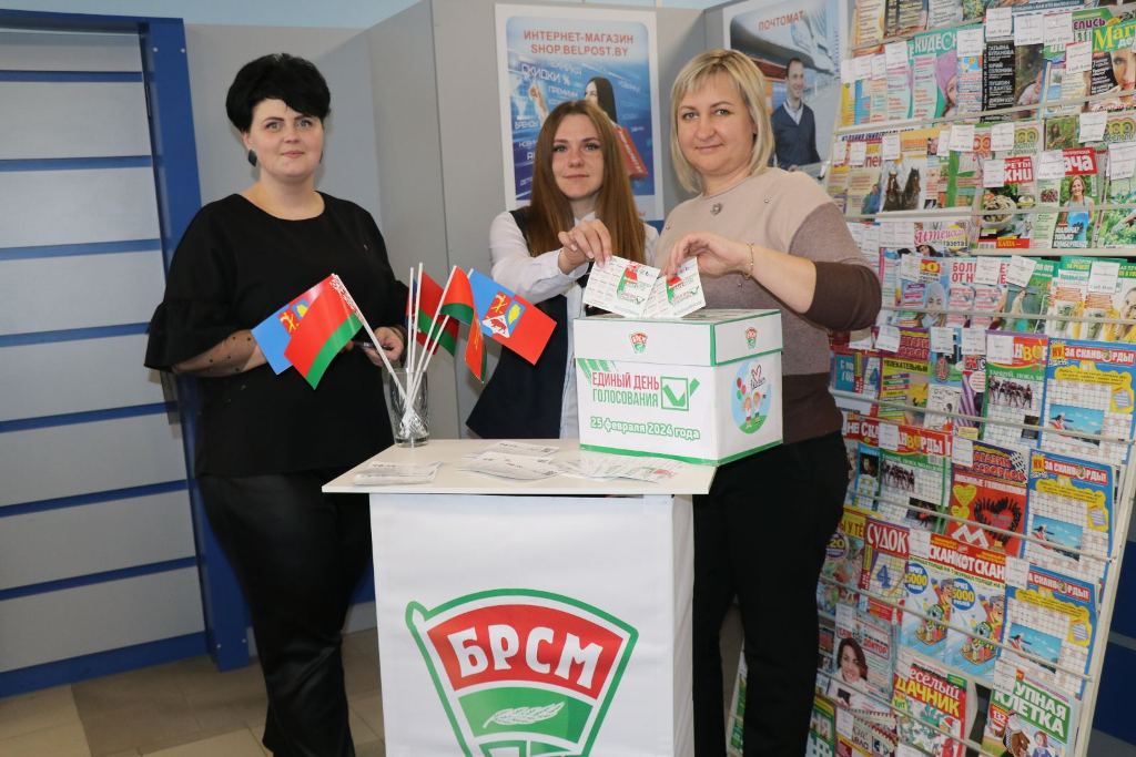 Пятого февраля стартовал республиканский молодежный информационно-просветительский проект «Паштоўка. БЕЛ”, идею которого предложили активисты ОО “БРСМ”. Главная цель проекта – напомнить гражданам страны об их конституционном избирательном праве. В рамках реализации инициативы каждый белорус может бесплатно по 20 февраля включительно заполнить почтовый флаер “Выбираем будущее вместе!” и оправить его близким, друзьям или знакомым, проживающим на территории нашей страны. Ответственность за доставку корреспонденции возложена на работников отделений почтовой связи РУП “Белпочта”.