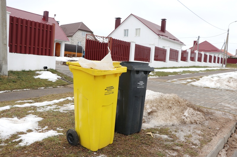 Одним из шагов Ошмянского РУП ЖКХ в рамках совершенствования схемы обращения с коммунальными отходами стала безвозмездная раздача жителям частного сектора города контейнеров для сбора мусора. Контейнер черного цвета предназначен для бытовых отходов, желтый – для вторичных материальных ресурсов, к которым относится пластик, стекло и бумага.