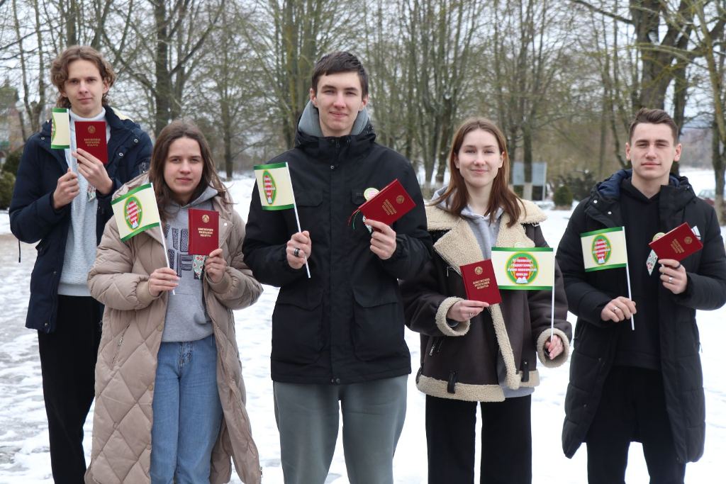 Юлия Субач, первый секретарь райкома ОО «БРСМ», поздравила ребят с новым статусом. Она вручила молодежи небольшие подарки, а также пожелала ребятам быть активными, участвовать в политической жизни своего района и всей страны. После всем впервые голосующим была вручена Конституция Республики Беларусь.
