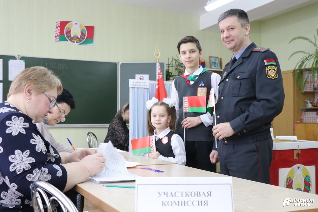 Семья Матылевич тоже решила прийти на участок всем составом. Первоклассница Аня и восьмиклассник Даниил учатся в СШ №2. В решающий момент они поддерживают папу и маму. Андрей и Елена по долгу службы принять участие в голосовании в основной день не смогут, поэтому воспользовались возможностью проголосовать досрочно.