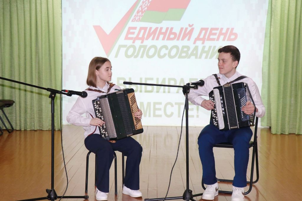 Праздничное настроение им сегодня дарят работники культуры и учреждений образования. Так, на Советском избирательном участке №20 прошла концертная программа под названием «Тебе, Беларусь, посвящаем мы песни и мысли свои!». Без музыкальных подарков не остались избиратели, которые пришли как раз к началу концертной программы. Для них свое творчество демонстрировали педагоги Ошмянской детской школы искусств. На протяжении часа свои лучшие композиции, хиты прошлых лет, авторские произведения, народные песни дарили ошмянцам талантливые музыканты и исполнители.