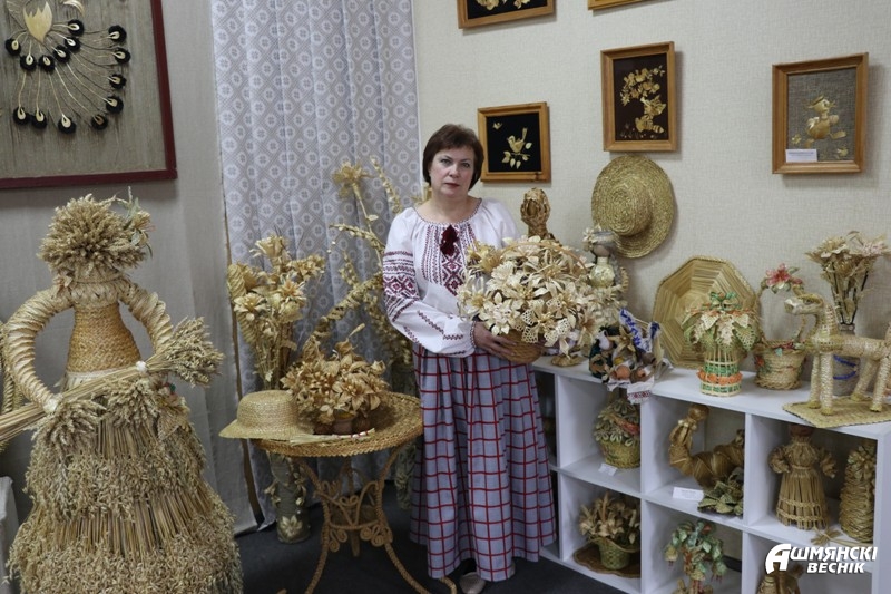 — У другой зале размяшчаецца шмат маіх вырабаў з саломы. Конікі, кветкі, столік – гэта і многае іншае я зрабіла сваімі рукамі. Другі пакой поўніцца вырабамі нашых майстроў: беларускімі лялькамі, кошыкамі, вязанымі цацкамі, папяровымі вырабамі.