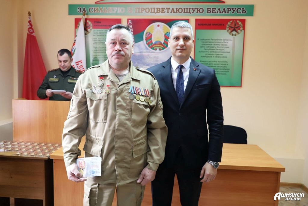 В военном комиссариате Ошмянского района ветеранам войны в Афганистане вручили юбилейные медали. Поприветствовать мужественных и сильных людей пришли председатель Ошмянского райисполкома Владислав Гершгорин, военный комиссар Ошмянского района Игорь Мисюкевич.