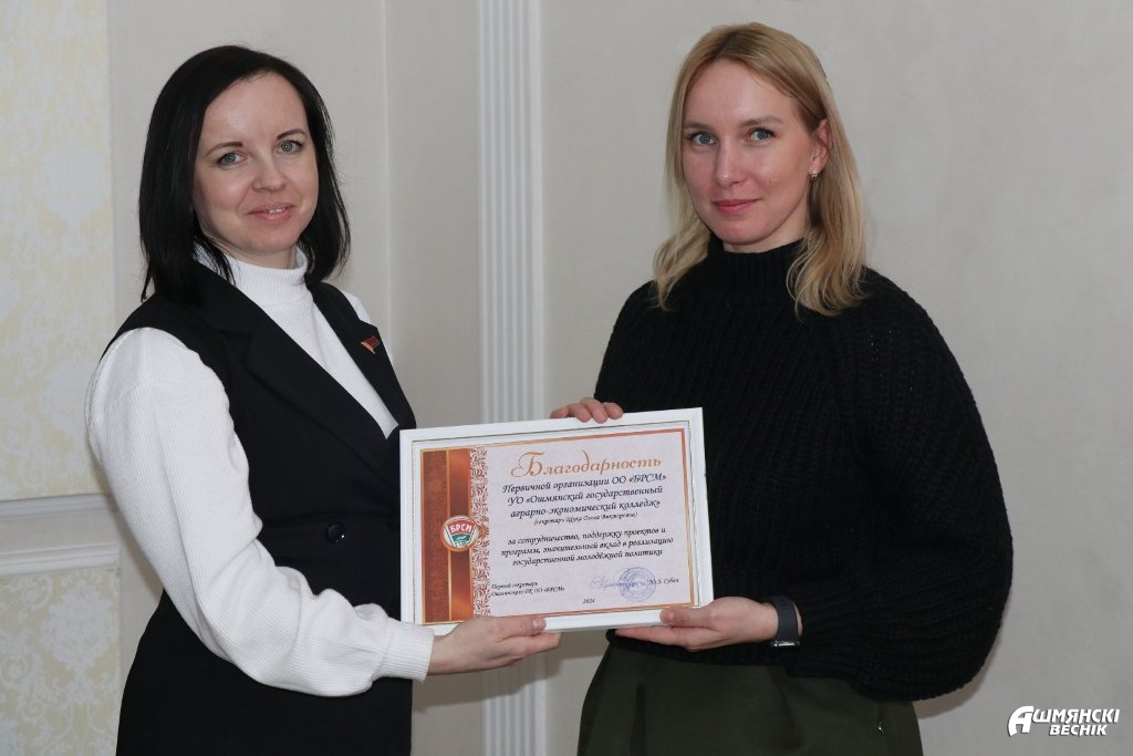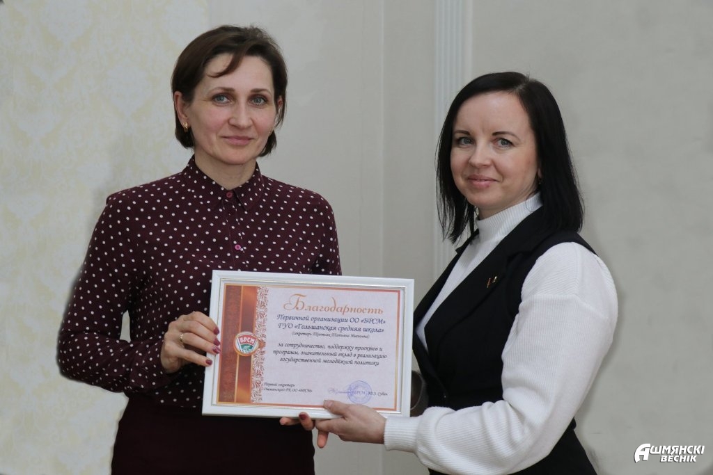 1 марта состоялся ХХV пленум Ошмянского РК ОО «БРСМ», на котором подвели итоги деятельности за прошедший год. Пленум прошел с участием Анны Язель, заместителя председателя Ошмянского райисполкома, и Ольги Шидловской, начальника отдела идеологической работы и по делам молодежи, а также секретарей молодежной организации. Юлия Субач, первый секретарь райкома ОО «БРСМ», выступила с докладом о деятельности организации. Она отметила, что в прошлом году молодежь принимала активное участие в благотворительных акциях, студотрядовском движении, спортивных и культурно-массовых мероприятиях. Юноши и девушки, состоящие в объединении, участвовали в патриотических велопробегах и диалоговых площадках, оказывали помощь ветеранам труда, людям с инвалидностью, пропагандировали здоровый образ жизни.