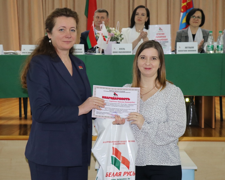 В ходе конференции был избран новый состав Совета и контрольно-ревизионная комиссия. Кроме того, был переизбран председатель Ошмянской районной организации РОО «Белая Русь». Большинством голосов присутствующие поддержали Анну Язель. С избранием ее поздравила Ольга Саванец. Анна Михайловна обратилась к участникам конференции со словами благодарности, настроила активистов объединения на плодотворную работу. Также были зарегистрированы две новые первички – Гольшанского и Краковского детских садов. Приятным моментом стало вручение благодарностей и подарков активистам движения.