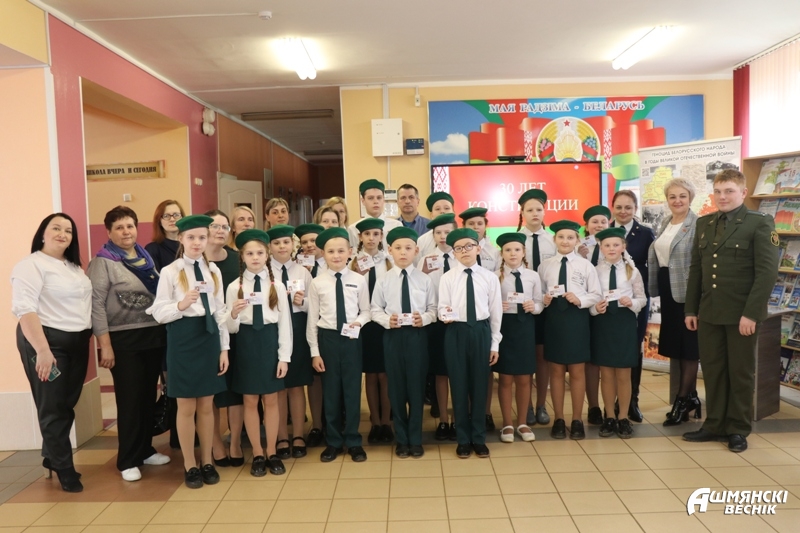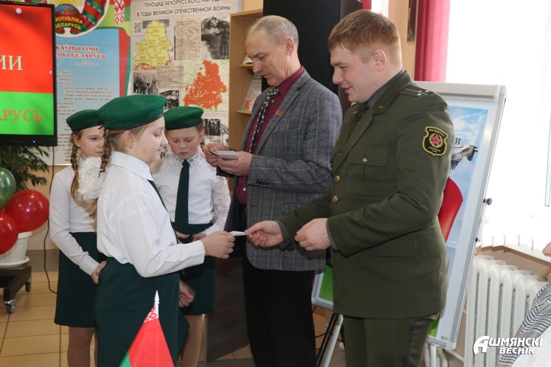 Прысутнічалі на мерапрыемстве і спецыяльна запрошаныя госці. Кацярына Ілюковіч, старшы памочнік пракурора, павіншавала пяцікласнікаў з важнай падзеяй у жыцці. Яна заклікала дзяцей з гонарам насіць форму і быць вернымі сваім абавязкам. Пасля школьнікі дружна прамовілі словы прысягі. Яны абяцалі быць неабыякавымі, сумленнымі, адказнымі і дапамагаць тым, хто гэтага асабліва патрабуе. У зале прысутнічалі і бацькі пяцікласнікаў, якія прыйшлі падтрымаць іх у гэты важны і хвалюючы момант. Старшы лейтэнант в/ч 25887 Аляксандр Крэгер уручыў школьні-кам пасведчанні. Ён прыгадаў аб сваім прафесійным самавызначэнні, а таксама выказаў спадзяванне, што хтосьці з дзяцей у далейшым звяжа жыццё з прафесіяй ваеннага, якая лічыцца адной з найбольш высакародных і адказных.
