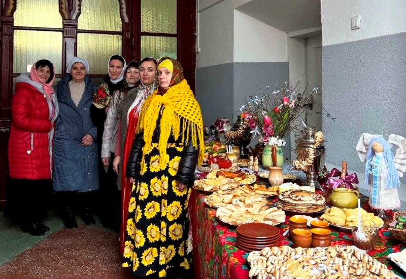 После окончания богослужения сестры сестричества святой великомученицы Варвары устроили праздничное угощение для своих братьев и сестер и гостей храма. В притворе всех угощали праздничной выпечкой, масленичными блинами с разнообразной начинкой и ароматным чаем на травах по образцу монастырского.
