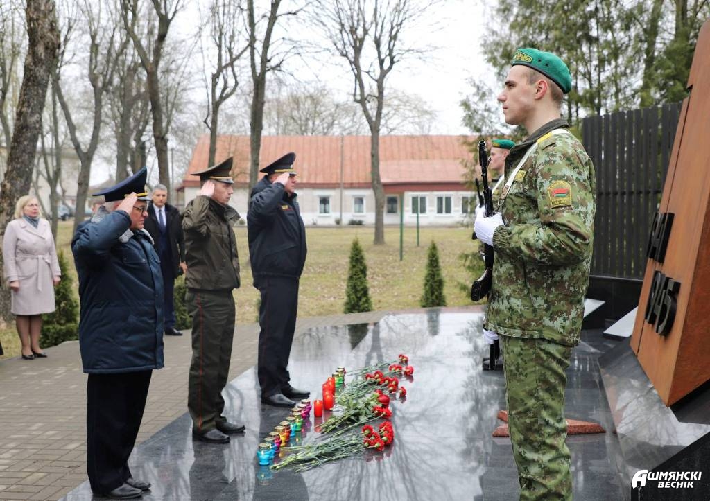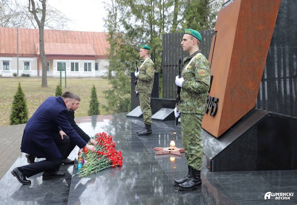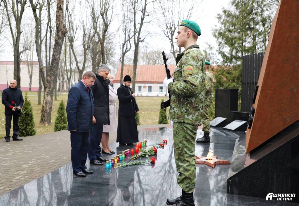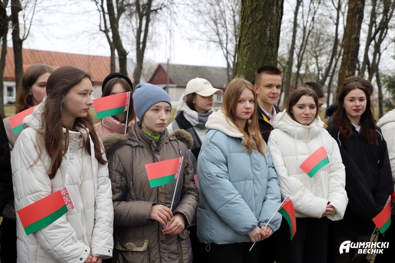 Участники митинга возложили цветы у памятника погибшим воинам и почтили минутой молчания память людей, зверски уничтоженных нацистскими карателями. Активисты районной организации ОО «БРСМ» установили лампады с частицей Вечного огня у братской могилы.