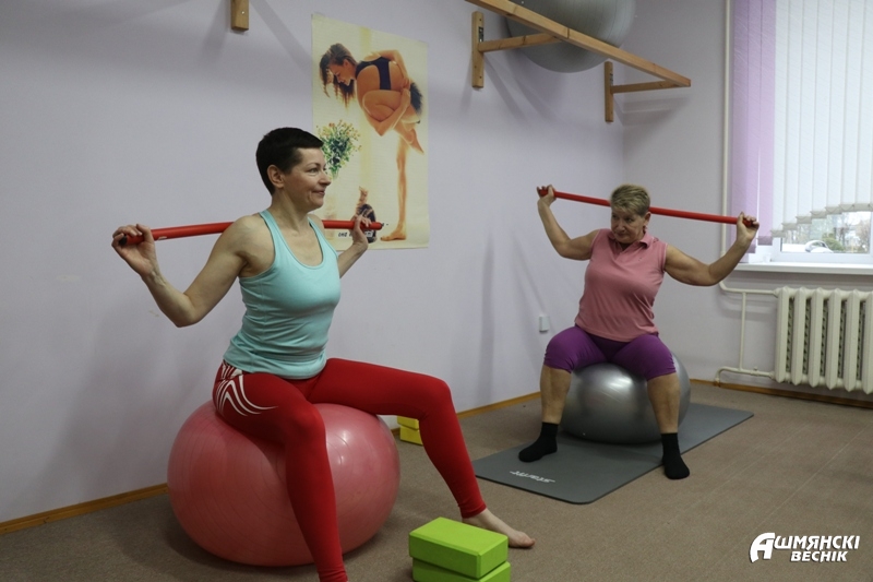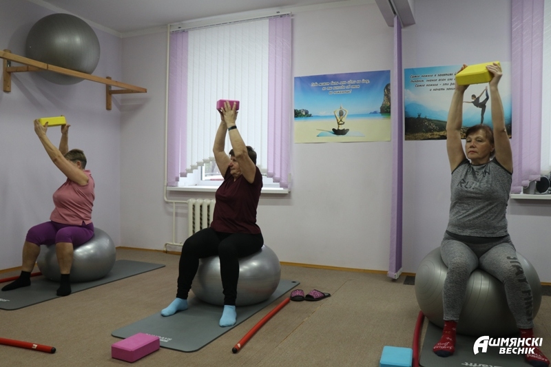 Наталья Авсюкевич, руководитель кружка «Зрелая красота» на базе отделения, занимается фитнесом с 1999 года, с 2005-го увлеклась йогой. Образование фитнес-тренера она получила в фитнес-центре «Багира» у Натальи Новожиловой, а окончив курсы, смогла преподавать и йогу. Саморазвитием Наталья Казимировна занимается постоянно – ищет онлайн-курсы по интересующим ее направлениям, углубляет свои знания. Только за последние полгода закончила авторские курсы по хатха-йоге, обучилась тейпированию лица и тела в академии красоты в Минске, приняла участие в республиканской научно-практической конференции «Медицинские и социальные конструкторы старения. Качество жизни пожилого человека». С этого года обучается в Гродненском государственном университете им. Я. Купалы по специальности «физкультурно-оздоровительная работа». Развитие, развитие, развитие — это девиз тренера. О том, как занятия фитнесом и йогой помогают человеку сохранить здоровье, Наталья Казимировна может рассказывать часами, она не просто демонстрирует упражнение, она рассказывает, какие группы мышц при этом задействованы, какое значение имеет выполнение упражнения для организма, для сохранения красоты и подвижности, для профилактики каких заболеваний важно.