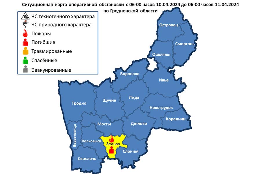 10.04.2024 в 23-58 поступило сообщение о пожаре жилого дома, используемого под дачу в д. Золотеево Зельвенского района. В результате повреждена кровля дома, перекрытие и межкомнатные перегородки, уничтожено имущество. В 01-57 обнаружен погибший мужчина 1977 г.р. Причина пожара устанавливается.