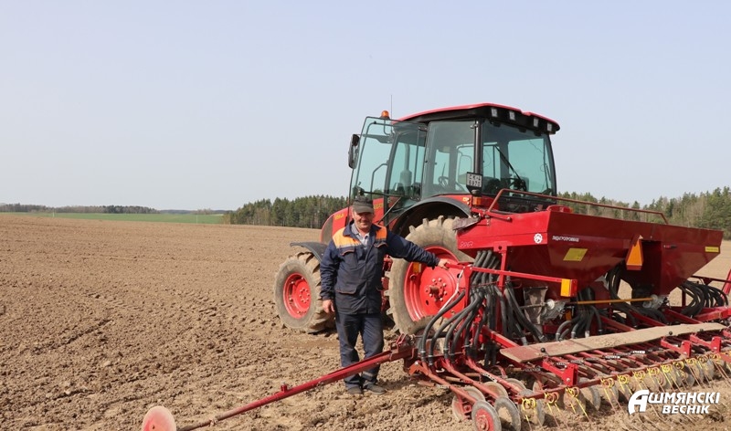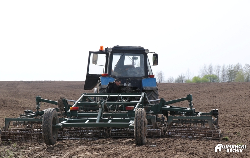 На поле за асфальтобетонным заводом идет сев ячменя. На тракторе МТЗ 12-21 с культиватором АКШ-6 здесь работает механизатор ОАО “Агропромтехника” Сергей Рогинский. Вместе с ним на МТЗ 15-23 с сеялкой СПУ-6 дружно трудится опытный механизатор КСУП “Краковка” Андрей Гроцкий.